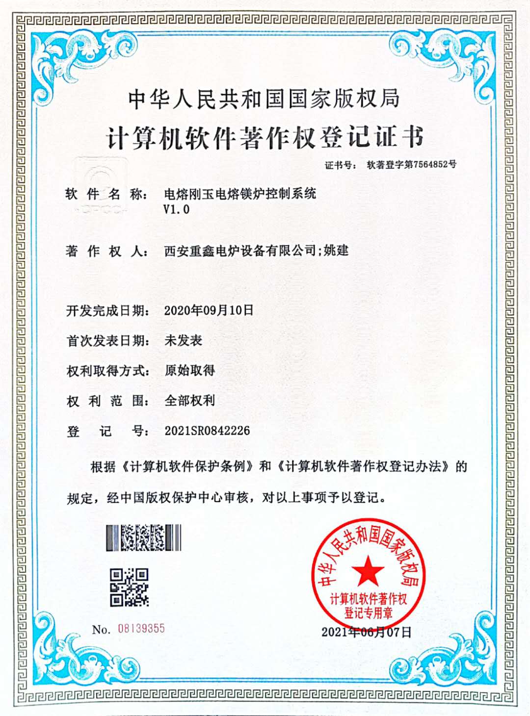 西安重鑫電爐設(shè)備有限公司國(guó)家軟件版權(quán),電容鎂爐、剛玉爐控制系統(tǒng)